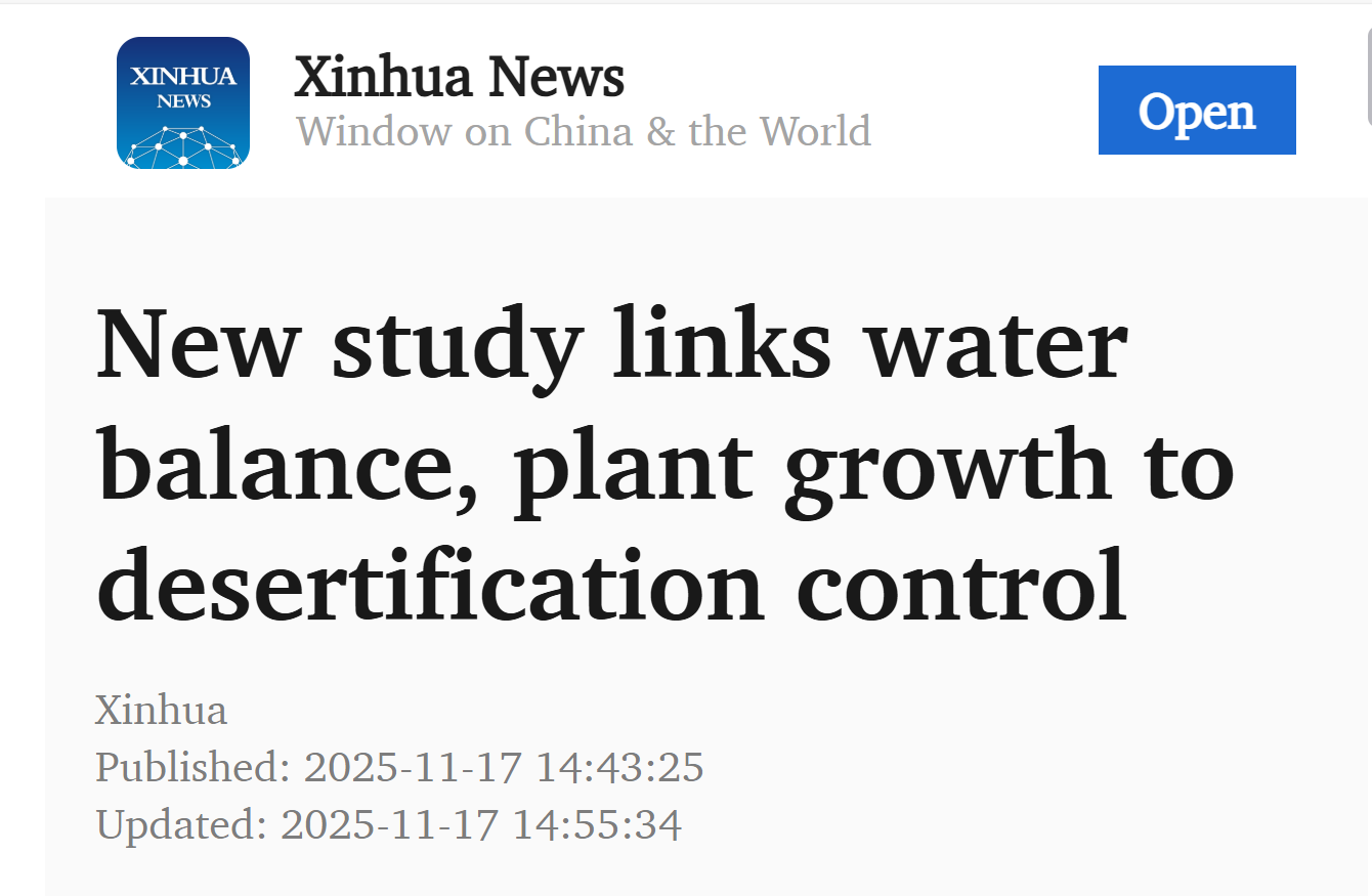 LANZHOU, Nov. 17 (Xinhua) -- A new study by Chinese researchers and their German counterparts has shed light on the link between groundwater balance and plant water-use efficiency in desert ecosystems, offering valuable insights for ecological restoration and combating desertification.